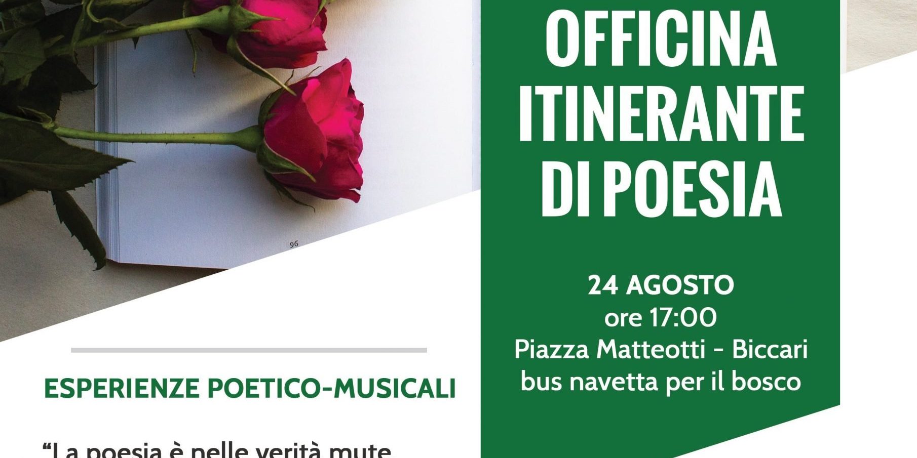 Siamo lieti di presentarvi l’evento “Piccola officina itinerante di Poesia”, una serie di esperienze poetico – musicali nei boschi del Monte Cornacchia e nel nostro centro storico orchestrate da Vanessa Podda ed il duo Priccinduo, vincitori del concorso “Un mese a Biccari”, con la collaborazione dell’Associazione Terre di Mezzo, l’operatore Daunia Avventura ed il Comune di Biccari.