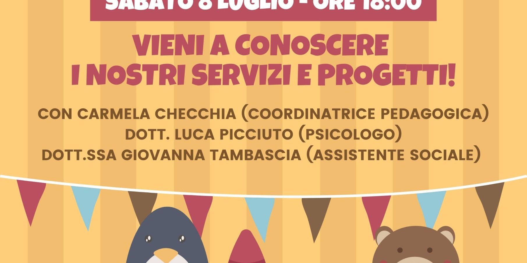 Sabato 8 Luglio, alle ore 18:00 presso la Ludoteca Comunale, vieni a conoscere i nostri servizi e progetti!