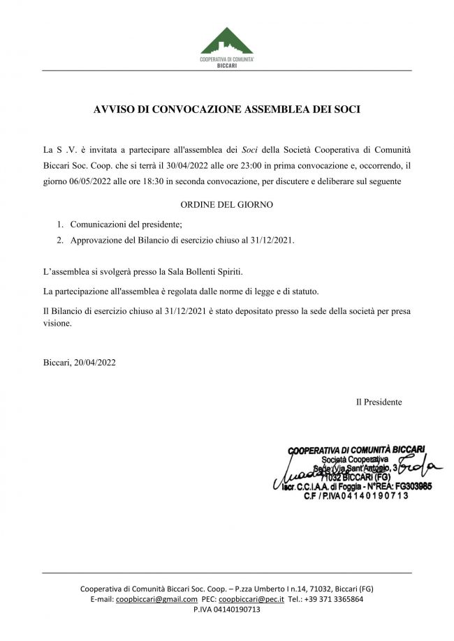 📣 CONVOCAZIONE ASSEMBLEA SOCI 📣 🗓 Sabato 6 Maggio – ore 18:30 – Bollenti Spiriti E’ convocata l’assemblea dei soci in prima convocazione il 30 Aprile e in seconda convocazione Sabato 6 Maggio, alle 18:30, presso Bollenti Spiriti con il seguente ODG: – Comunicazioni del presidente – Approvazione del Bilancio di esercizio chiuso al 31/12/2022…